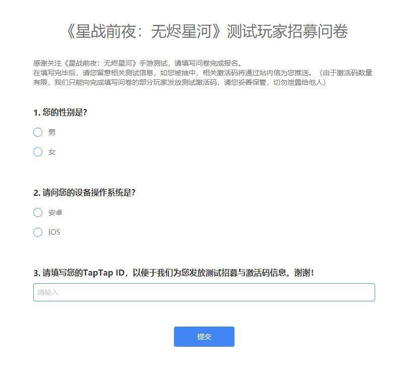 打开后玩家可以看到如图的界面,如实填写即可。在开测之前进行填写都有机会获取测试码,感兴趣的玩家不要错过,赶紧行动吧。