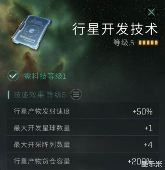 游戏中给玩家们提供了十分丰富的科技树系统,在行星产物方面也有对应的科技可以提升开采速度。需要注意的是行星开发技术并不会直接提升玩家的开采速度,它主要会给玩家提升同一时间可开采星球数量以及开采阵列数量的能力,所以需要玩家有足够的舰船来保证可以同时进行多线开采来提升效率。