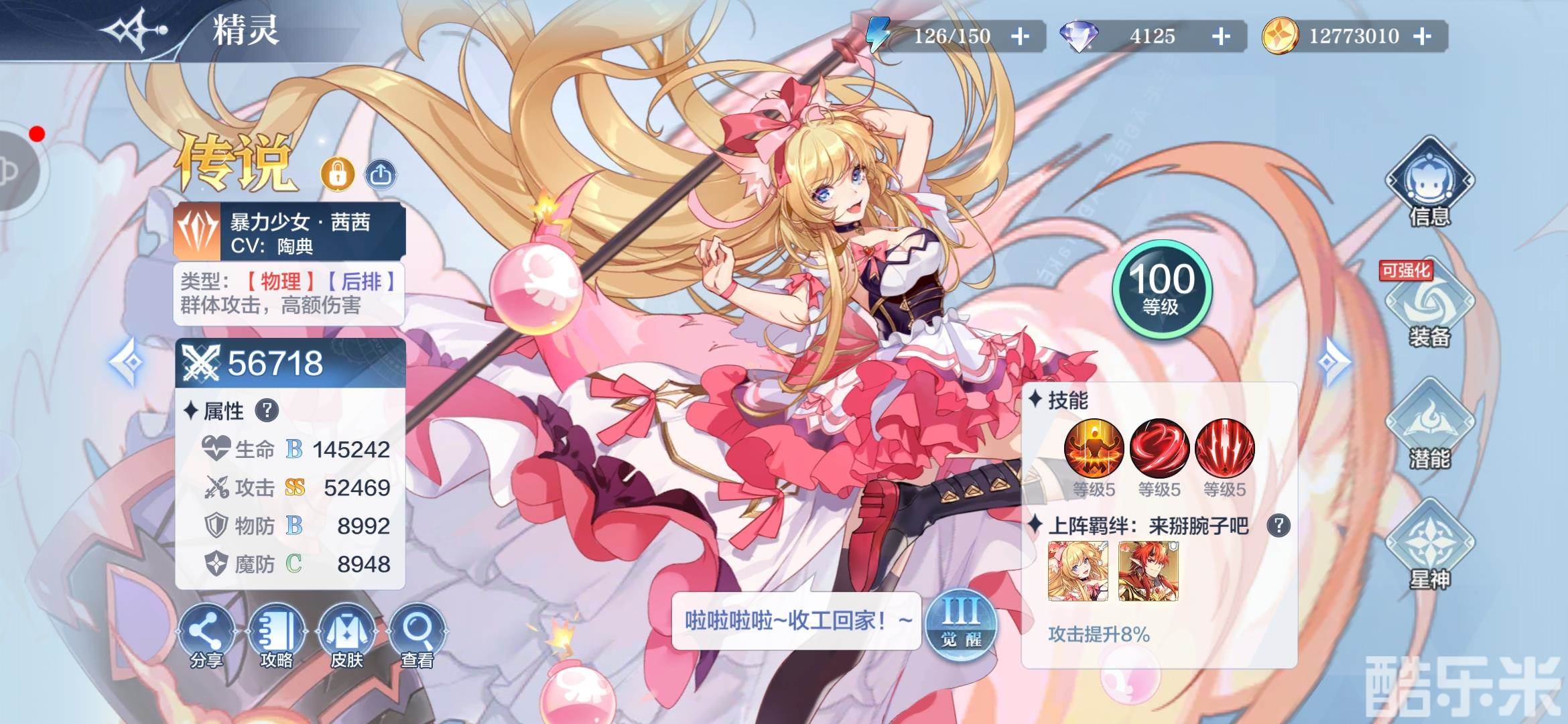 石姬练度不需要多大,潜能跟上就行,有潘多拉次元帮忙快速清路。