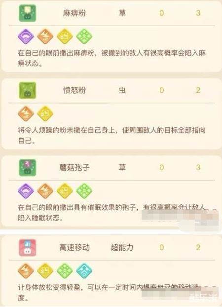 优先俩个技能槽为主。单技能槽就带一个麻痹粉/蘑菇孢子就可以.