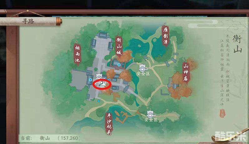 前置条件证明酒量。2人组队,一定是2人!去衡山回雁楼(160,258),距离传送点很近。
