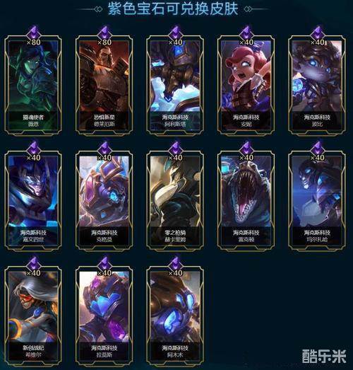 ig战队2018年夺得lpl首个全球总决赛冠军,腾讯官方开启了海克斯科技皮肤限时半价的活动,皮肤兑换所需花费的紫色宝石减半!本来需要花费80个宝石才能换取的珍贵皮肤只需要40个宝石,40个宝石才能换取的只需要20个宝石,小编犹记得自己当年也是兑换了一个大嘴的海克斯科技皮肤,只需要20个紫色宝石。