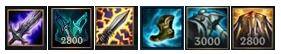 3、破败,幻影之舞,电刀三件提供的攻速足够我们砍起来了,平a时开e技能可以增强普攻效果。