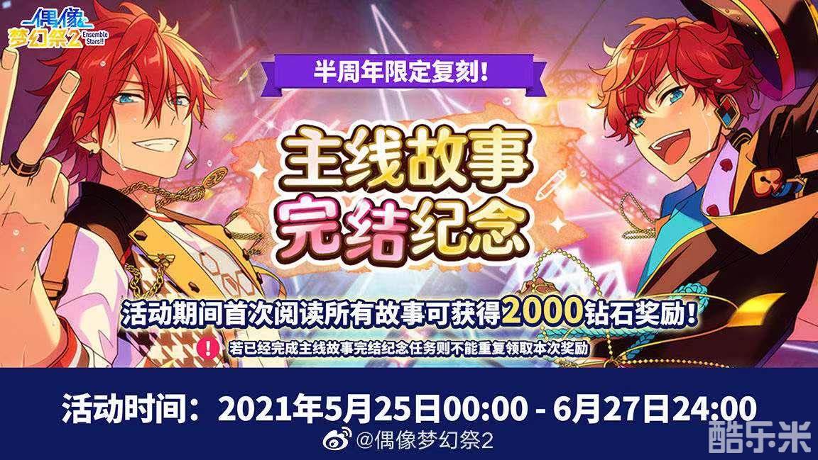 不想错过与他们共同经历的点滴,将你们的故事一起铭刻在回忆里吧。5月25日00:00-6月27日24:00,主线故事阅读奖励复刻开启,阅读主线故事即可免费获得【钻石x2000】。还没拿到奖励的制作人们,千万不要错过这次的复刻活动!