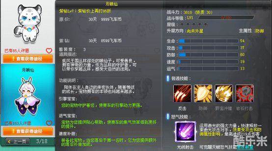 另一只速度型宠物萌兔绅士的连击连环踢技能,可以给对手造成连续大量伤害,威力惊人,怒气技能闪电球也能给对手造成致命打击,觉醒天赋技能十万伏特伤害更加惊人。