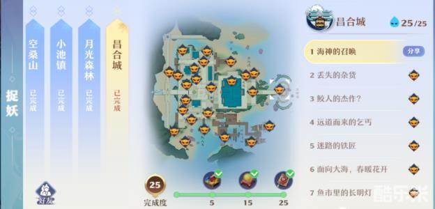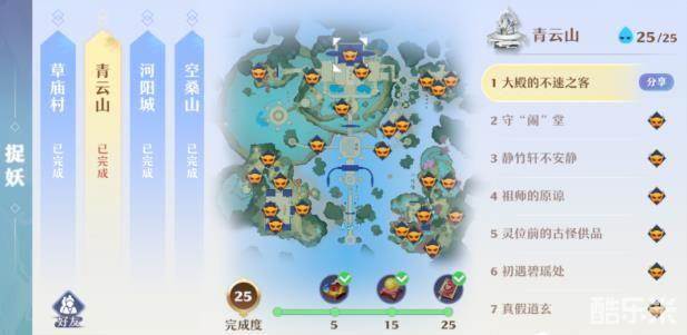 目前游戏中开放捉妖的地图一共有7张草庙村、青云山、河阳城、空桑山、小池镇、月光森林、昌合城,捉妖每次都可以拿小金丹,完成相应数量还可以拿天玄宝图和高书。