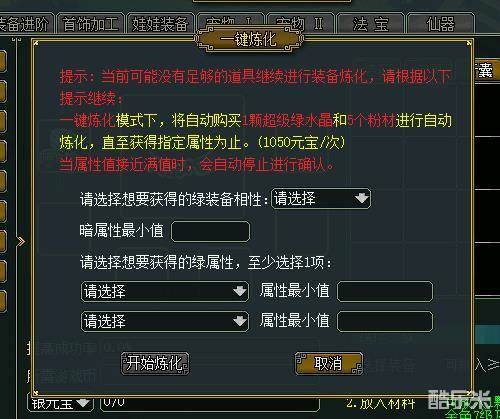 《问道》鬼斧神工中的宠物幻化分页,还为道友们增加了一键洗宠功能,让各位道友能够方便快捷的改变宠物成长属性。不仅如此,各位道友在鬼斧神工页面炼化绿装、装备封印、气象炼化时,其中的一键操作按钮可以设定所需属性的最小值,包括暗属性和想要获得两项绿属性,以及他们的属性最小值。