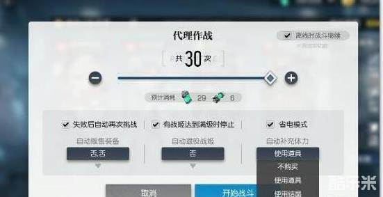 ②失败后自动再次挑战:如果挂机一些有几率翻车的副本一定要选,挂狗粮一般不会失败。作战失败不耗费任何资源。