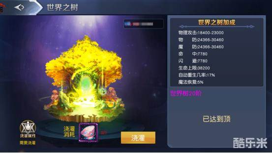 首先大家要知道世界之树最高可以达到20阶,需要的材料有大地之壤和大地结晶,因为世界之树有着不错的属性,所以大家一定要好好培养,多多浇灌可以增加人物的基础属性哦,另外生命之泉可以通过荣耀来换,如果你的荣耀多的话那就千万不要浪费,多换一点生命之泉。