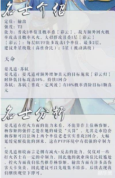 晏几道相较而言是拥有减火+反击的能力,仅仅对一些打火名士有一定的牵制力,因此他的就业岗位比较尴尬,控火方面我们依然推荐杨容姬,输出方面有许多高伤害天卡负责,因此建议可以先收集不培养,后续表现我们继续观望下即可。