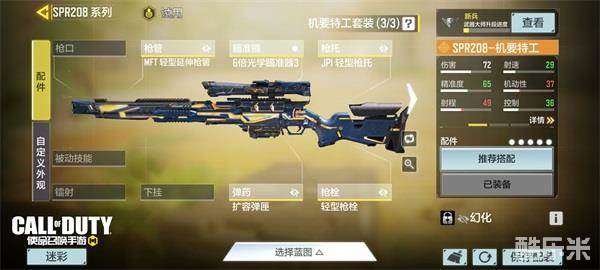 陪伴雅莉丝-情报专家执行任务的SPR208,同样不改特工本色。凭借着将整个枪匠系统的深度自定义发挥到极限的特性,SPR208不仅在多人对战中输出强势,在装备特定配件后,在使命战场全距离击中敌人头部都可一枪毙命。作为一把传说级别的武器,SPR208拥有恐怖的杀伤力以及灵活的适配性,实力不容小觑。