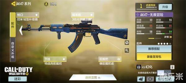 此次史诗级武器AK47-无畏冒险整体以暗色为基调,黛蓝枪身沉淀着来自深海的深邃与寂静。且同样作为使命战场的强势武器,虽然近期略有调整,却依然受到众多玩家的关注。特配OSW轻型补偿器、特战兵前握把与橡胶握把皮提升射击手感的同时大幅度削弱垂直后坐力,降低了AK47的操作门槛。同时装备3倍光学瞄准器1,助力玩家中距离精准制敌。