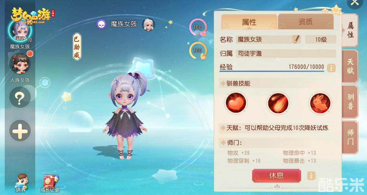 孩子长大了,是时候上课获取新知识了!进入童年期后,孩子们便可以通过参加指定课程,提高天赋领悟中的领悟值;还可以通过学习技能书,获得为召唤兽提供加成的技能;更可以拜师加入门派,学习门派技能为父母提供加成。当然,孩子与少侠的亲密度与孩子自身的精力值会影响相应技能的效果,所以身为父母的少侠们记得不时关注下孩子们哟!