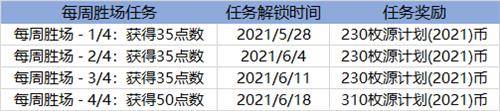 通过每周依次解锁的周常胜场任务更可赚取1000枚源计划(2021)币!