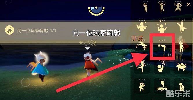 点击屏幕上方中间动作栏 找到鞠躬动作 面对一位玩家完成鞠躬即可 。