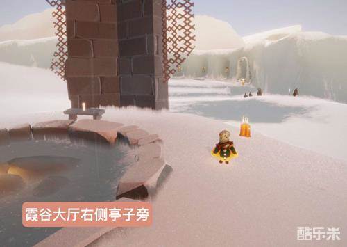 季节蜡烛在霞谷大厅右边的亭子边上,有小凳子的地方。