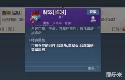 1、使用普通巨兽御灵符召唤后可出现百年异兽翡翠,地图随机刷新翡翠