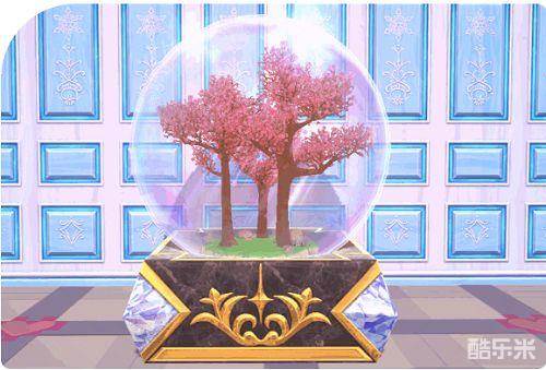 幸运水晶球,里面粉嫩桃树,花瓣飘落,玻璃外罩也在阳光照耀下炫彩亮丽。