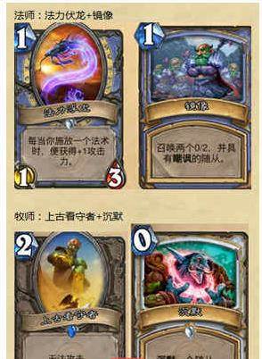 牧师拥有0费沉默牌,如果搭配2费无法攻击的上古看守者,直接在无法攻击上画上大叉,变成可以攻击。德鲁伊起手如果摸到了激活,搭配硬币和原来的一个水晶,直接召唤冰封雪人,4/5硬身板在前期成为无法跨越的大流氓。潜行者如果摸到迪菲亚头目,搭配硬币可以在第一回合就召唤2/2,2/1两个壮汉。当然还有诸如猎人用硬币直接放两个麻风侏儒,萨满放两个尘魔,术士把烈焰小鬼和年轻的女祭司一起叫上互相加成,圣骑士银色侍从搭配力量祝福……