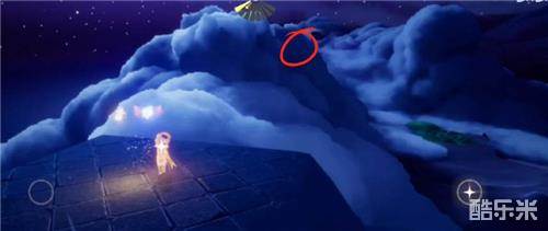 第一个光翼,如下图所示,这个方形石头山洞的左上角,白框所示的位置,可以蹭着云回能量飞上去收集。