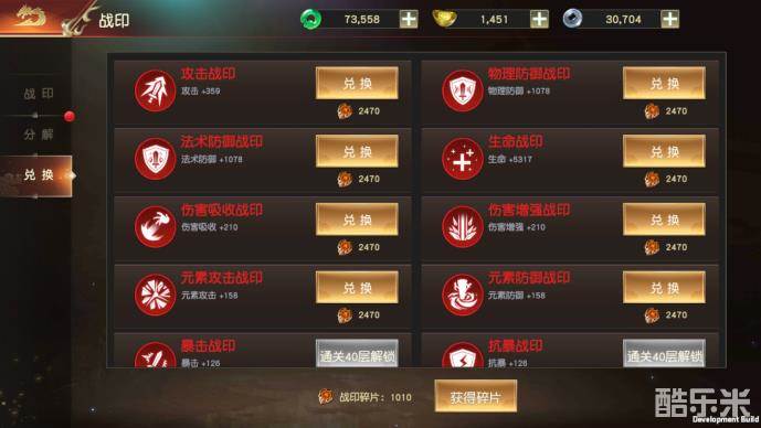 当我们通过战印塔或者战印寻宝一直获得不到我们想要的战印,我们可以通过战印兑换界面来兑换,兑换需要消耗“战印碎片”,通过战印寻宝可获得“战印碎片”,不要犹豫,好东西就要尽早兑换,早换早享受~