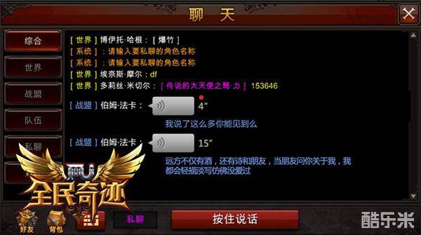 其实,《全民奇迹MU》的交互功能发展由来已久。以最基本的聊天系统为例,综合、世界、战盟、队伍、私聊、系统这样精细化的分频聊天模式让玩家们能够随时由综合聊天界面切换到任意自己需要查看的内容频道,让过多的驳杂信息通通被屏蔽干净,畅快的交流,就是这么简单;而副本中独立的场景聊天界面,更是让玩家在紧张激烈的副本中能够最快速的处理交互信息。
