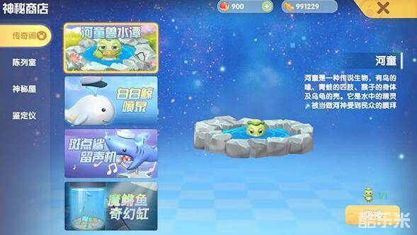 这是里面第一项兑换列表,这里主要是兑换家园中的装饰品的,需要使用到的道具是传说鱼类,这些传说鱼类分别需要在不同的场景中才能够钓到,河童在下雨天的家园湖中钓到;白白鲸在雪山白天的时候掉;斑点鲨在神秘湖下雨天的时候钓;魔鱂鱼爱浆果丛林钓鱼点。