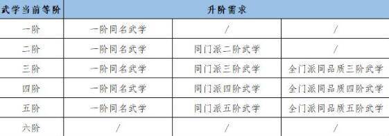 升级武学需要同名武学加对应等级的武学,越高等级需求数量越多。因此总体而言玩家根据个人喜好自由选择门派即可,不会因为门派武学差距而拉开战力。