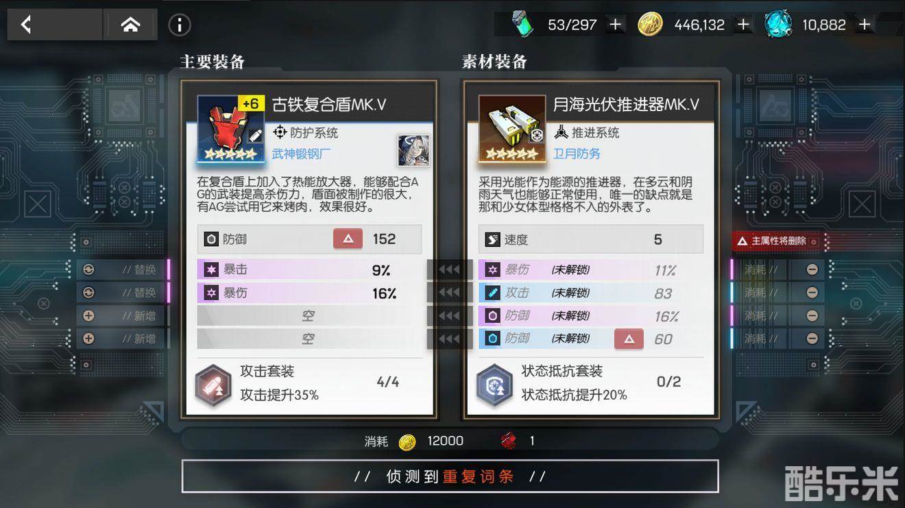 玩家转移装备副属性词条需要通过母舰的科技舰来完成,在转移时只能将低星的装备词条转给高星的装备词条,并且会根据装备的星级消耗对应的材料。