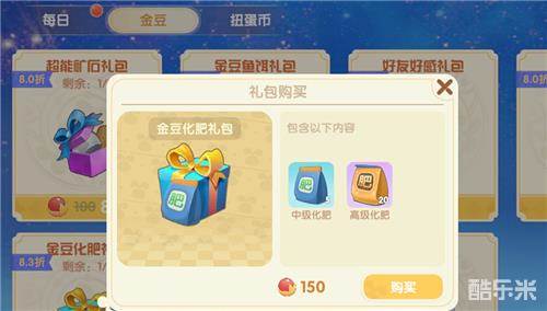 最后就能用150金豆购买【20包高级化肥+5包中级化肥】了,相当于15块钱。