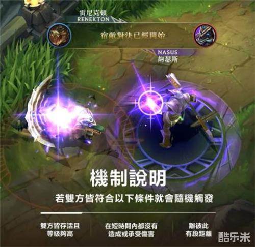 判定获胜条件:击杀宿敌,或者在对方阵亡前对其造成伤害,随后获得永久增益。