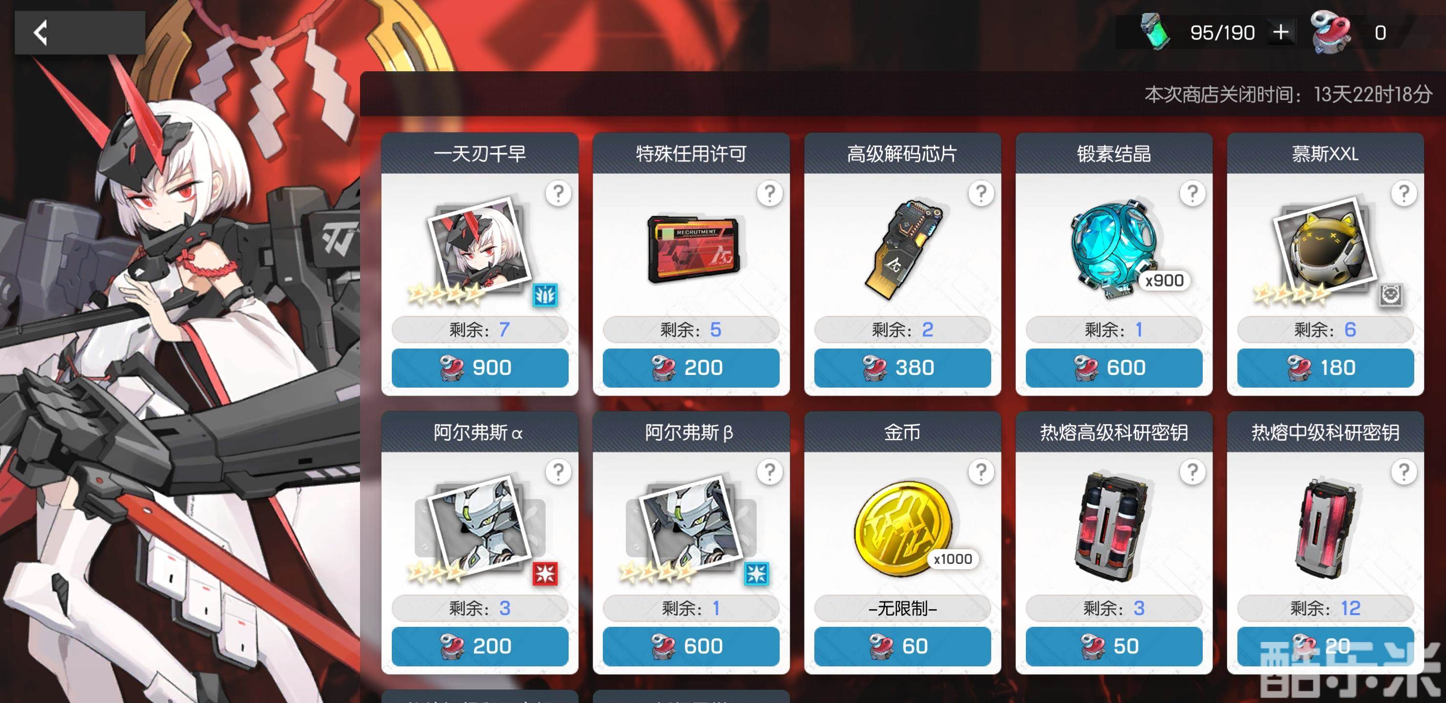 在活动商店中,重点兑换一天刃千早,限定招募卷,锻素结晶,经验猫以及阿尔弗斯。一天刃虽然只是四星角色,但是在活动期间使用一天刃有额外加成。