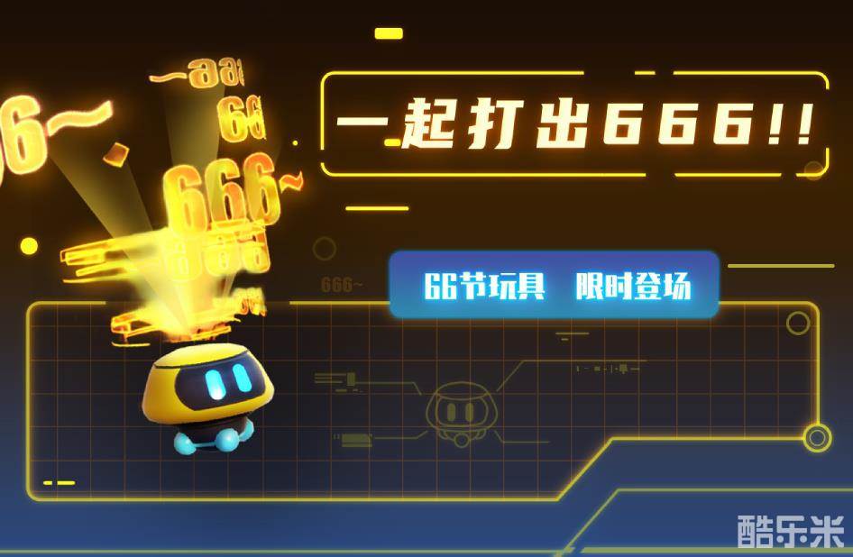 66节怎么可以没有666的玩具呢?活动期间,各位战斗家们可以花费6元购买66节特别玩具【666玩具】。666玩具是一个全息投影弹幕的玩具,会在空中不停的刷“666······”的弹幕~请为你的精彩操作喝彩吧~