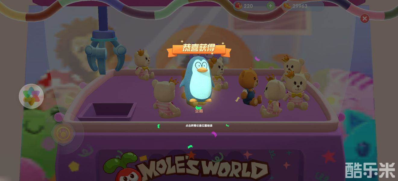 摩尔庄园手游中,玩家获取企鹅玩偶目前需要通过娃娃机进行抓取才能获得。玩家在娃娃机中可以看到一个蓝色背影的玩偶,当玩家抓到之后就可以其实它是一只企鹅玩偶。