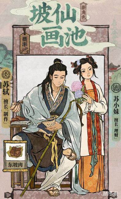 6月5日-6月29日,【坡仙画池】开启。天级新角色【苏轼】& 卿级新角色【苏小妹】共同进入该画池,其中天级居民【苏轼】及其专属珍宝【东坡肉】概率提升。
