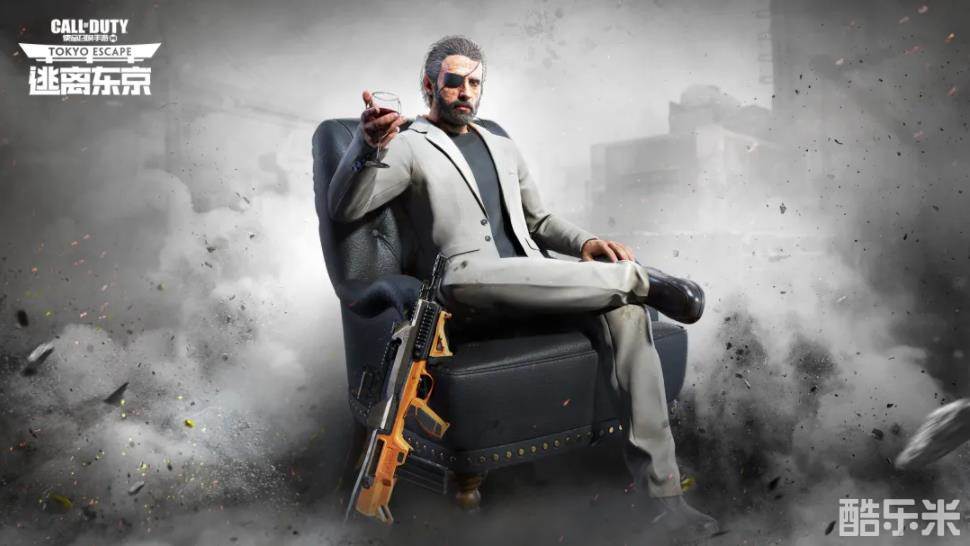 皮革沙发上的身影姿态闲适,动作自如,杯中红酒倒映出一幅打理妥帖的姿容,单边眼罩昭显其危险性,脚边随意堆放的武器则为他又添一分威慑力。