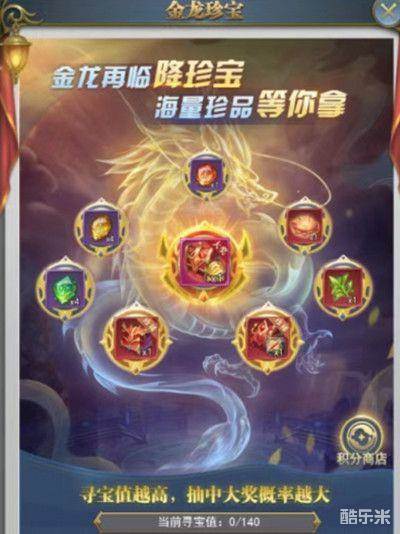 可通过单抽、十连抽(9折)进行寻宝,每次寻宝都可增加寻宝值,寻宝值越高,抽中大奖概率越高;抽中大奖后寻宝值清零,所有大奖抽完后,不可继续抽奖