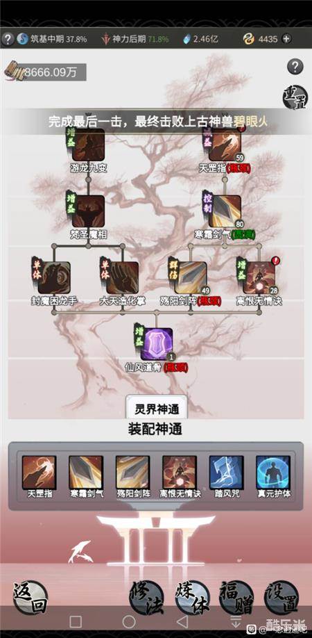 人界——天罡指、剑气、剑阵、离恨决,加上离恨前置技能双盾。升级平滑,不需要额外浪费一点晶石,要单体有单体,要控制有控制,要群攻有群攻,要盾有盾。剑修基本技能也都齐了,剑指、剑气、剑阵、剑诀。