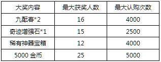 每次认购均可随机获得一份认购奖励,参与认购的玩家均有机会获得大奖奖励;