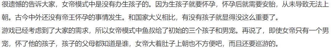 首先是后宫,一开始后宫空无一人啊,但是系统自带了三个孩子,两个皇子一个公主,而且女帝无法生育。这些妃子大部分来自浩荡巡游的偶遇,战争的俘获,少数来自选秀,顺便一提,浩荡巡游偶遇的都是美少年,选秀也是会出美女的。