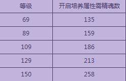 不同等级神兵开启培养属性需要精魂数量表如下: