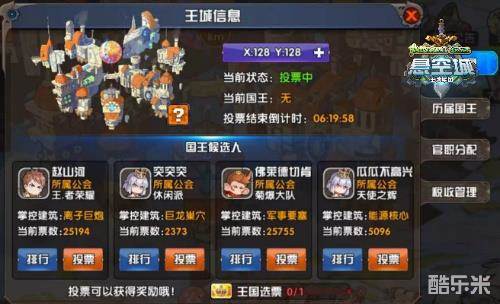 如果你是公会老大,并且所在公会人才济济,活跃高人气旺,自身战斗力也是数一数二的强,国王的宝座没理由拱手相让,在国王选举中,号召公会弟兄,并用实力去征服其他玩家投票,拿下国王也是实至名归,当然国王做不好就会引发众怒,毕竟离子巨炮的杀伤力甭管是不是国王,都只要一发!