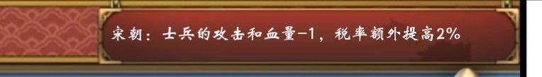 Buff:赵光义初始血量-1,皇帝统御120以上血量攻击各加2,完成兄长遗愿取消debuff且血量加1,杨姓将领带领攻击额外加2