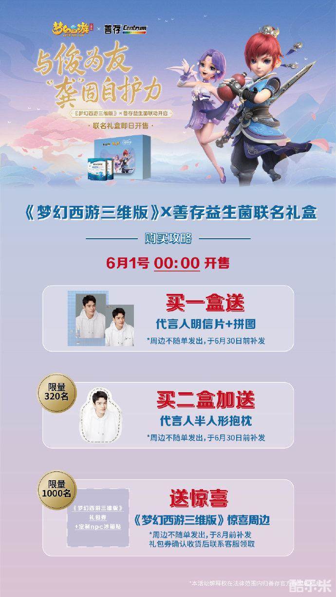 此次联动中,《梦幻西游三维版》与善存益生菌共同推出了联名定制礼盒,为各位少侠送出快乐和健康双重祝福。希望大家可以与俊为友,“龚”固自护力,一边快乐游戏,一边畅享健康生活。
