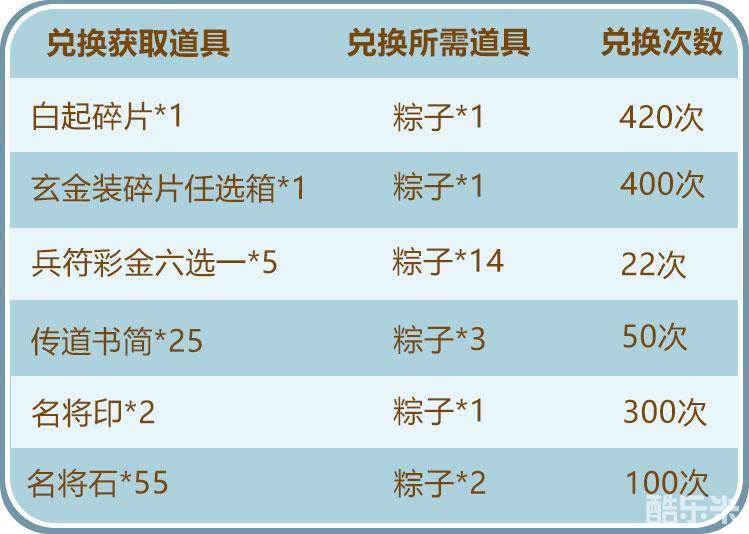 「粽子」可用来兑换白起碎片、玄金装碎片任选箱等稀有资源: