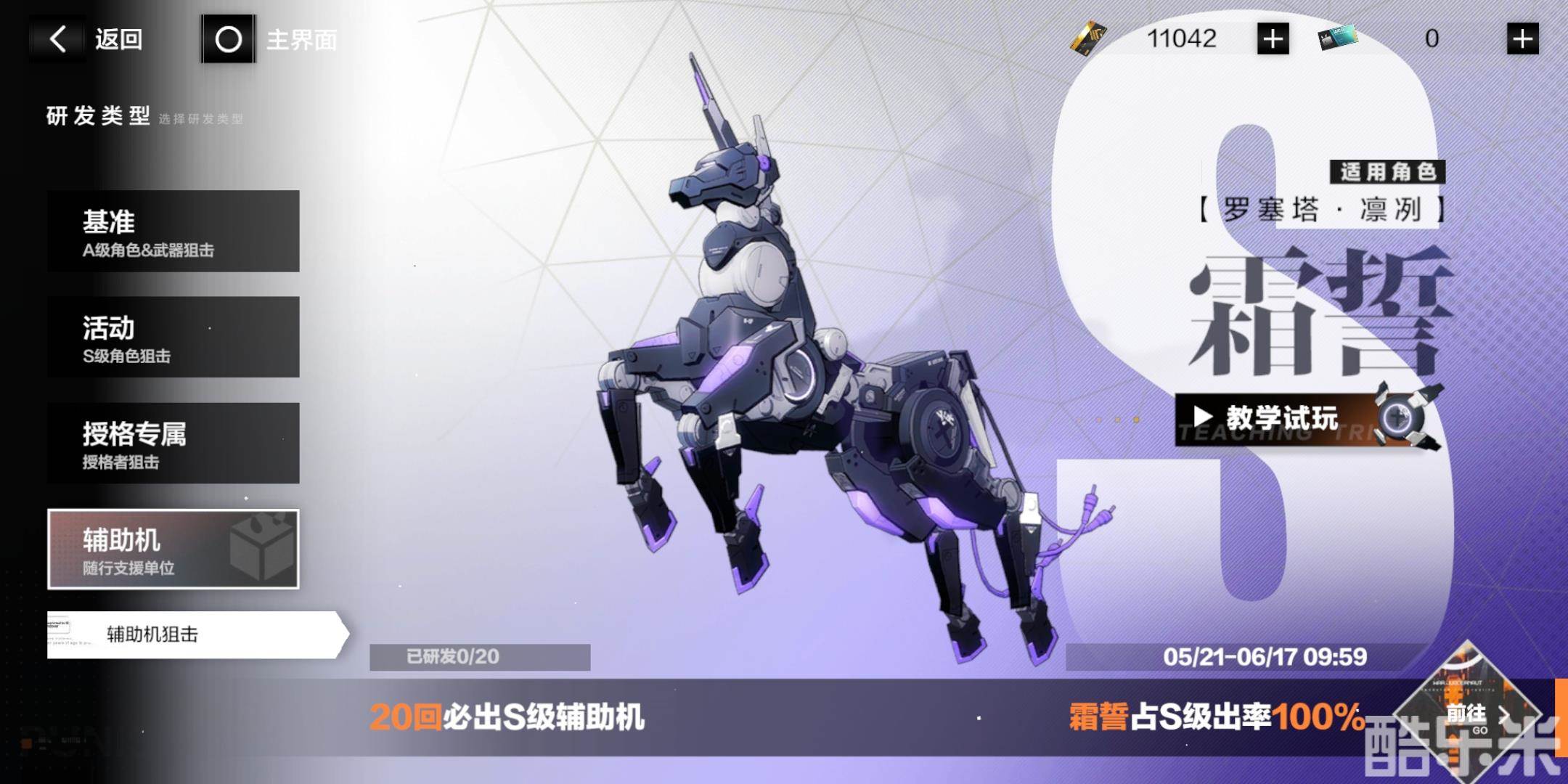 抽卡之前,请将霜誓设置为up辅助机,这样在抽到S级辅助机时可保证必定是霜誓。霜誓100%up活动仅在谜境刻痕版本有效,之后出货概率就会降低到70%,即存在歪的风险,因此建议黑卡充裕的玩家尽量本版本抽取霜誓。