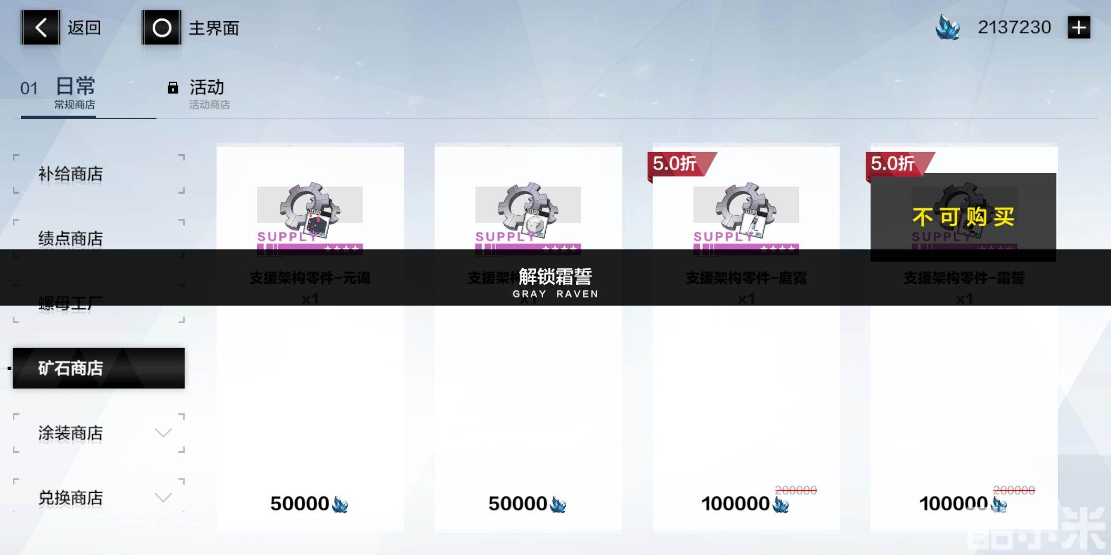 矿石商店是第二种获得霜誓的方法,玩家需要参与挖矿活动获得矿石,然后在矿石商店中兑换霜誓碎片,价格为10w矿石/1碎片。每期拓荒难度挖矿玩法可获得50w矿石,普通难度只有30w,而兑换霜誓则需要30碎片哦!