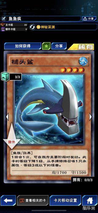 锤头鲨需要通过和黑商交易获得,我最早认识到这卡的时候是OCG环境里的三星水产超量轴的崛起,不过那都是对于DL来说很遥远的事,现在的锤头鲨在国服DL里的使用主要是在一些鱼族卡组里快速拉出手里的三星鱼族下级。