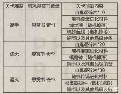 活动期间,地图中将出现名为“奇谭山”的新地点,等级在60级及其以上的玩家均可进入,而进入关卡需要使用[悬赏书.奇]进行挑战。