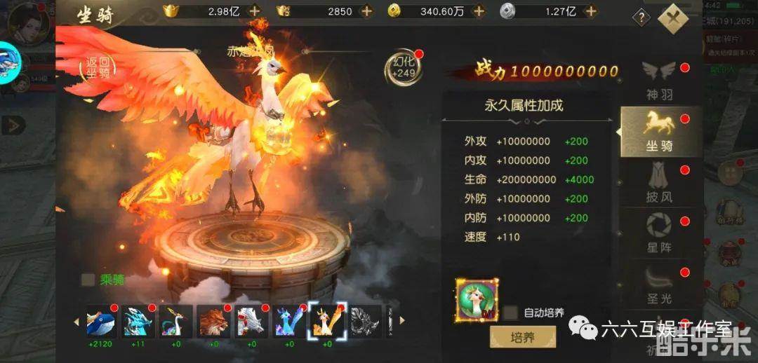 坐骑礼包:坐骑培养丹(高级)*50、坐骑进阶丹*50、铁牛*1